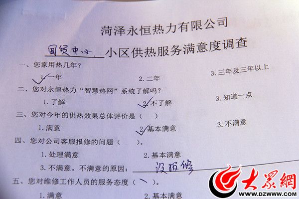 大眾網(wǎng)記者在現(xiàn)場看到,永恒熱力工作人員還向市民發(fā)放一張小區(qū)供熱服務(wù)滿意度調(diào)查表,調(diào)查表上,市民可對供熱效果、客服保修、維修工作人員的服務(wù)態(tài)度等事項(xiàng)進(jìn)行評價(jià),各小區(qū)的供熱服務(wù)質(zhì)量也由此直接呈現(xiàn)出來。菏澤永恒熱力相關(guān)負(fù)責(zé)人介紹,他們將根據(jù)調(diào)查結(jié)果,改進(jìn)供熱服務(wù)方式,持續(xù)提高服務(wù)質(zhì)量。