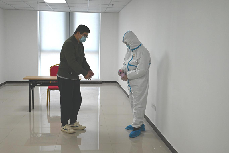 疫情防控應(yīng)急指揮部組長(zhǎng)肖培飛獲悉情況后,第一時(shí)間命令啟動(dòng)應(yīng)急處置預(yù)案,兩位身著防護(hù)服的防疫小組成員迅速抵達(dá)現(xiàn)場(chǎng),引導(dǎo)該員工到隔離室隔離。隨后,疫情防控應(yīng)急指揮部按要求向集團(tuán)公司、社區(qū)、衛(wèi)生防疫等部門進(jìn)行報(bào)備,并根據(jù)要求,安排專車將該員工轉(zhuǎn)移至熱定點(diǎn)收治醫(yī)院進(jìn)行進(jìn)一步檢查。