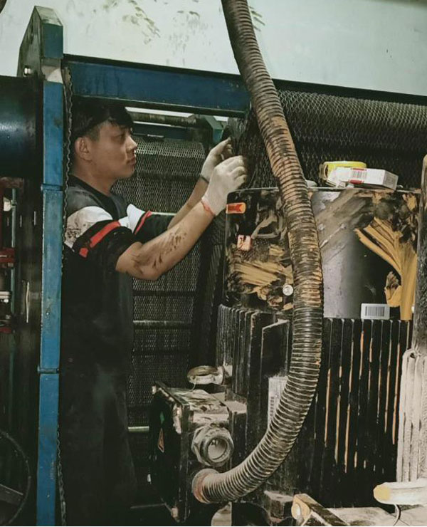 下午4時左右,在天闊逸城小區(qū)的換熱站內,家屬院角落處的供熱設備機房內悶熱狹小,空氣流通不暢,剛進去一小會就已經汗流浹背。運營管理四部部長馬成喜正在和部門同事們清洗換熱器,沖洗換熱片時,污漬大片濺到身上、衣服上,但是現(xiàn)場無一人抱怨,大家分工協(xié)作,輪流沖洗。