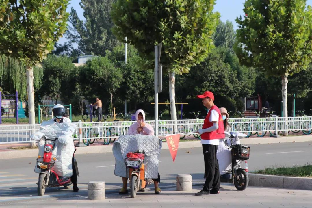 上午一大早,志愿服務(wù)隊(duì)就來(lái)到了包聯(lián)地段,他們身穿紅馬甲、頭戴小紅帽、手拿夾子,沿著道路清理動(dòng)物糞便,撿拾紙屑、煙頭等散落垃圾;規(guī)勸規(guī)整機(jī)動(dòng)車(chē)、非機(jī)動(dòng)車(chē)在劃線區(qū)域內(nèi)整齊停放;勸阻遛狗不栓繩等不文明養(yǎng)寵行為;勸阻非機(jī)動(dòng)車(chē)逆行等不文明行為;參與交通疏導(dǎo),在十字路口引導(dǎo)市民有序通行;清理亂貼亂畫(huà)小廣告,對(duì)公益設(shè)施進(jìn)行保潔維護(hù)。