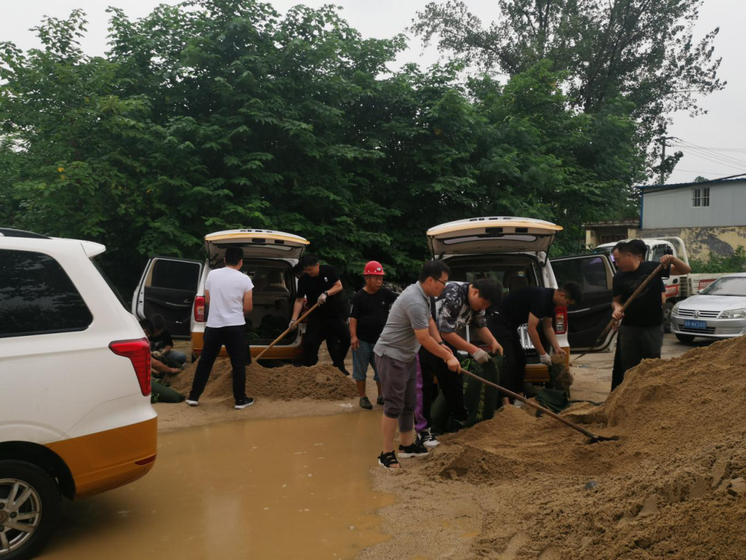 永恒熱力工作人員進(jìn)行防汛沙袋分裝